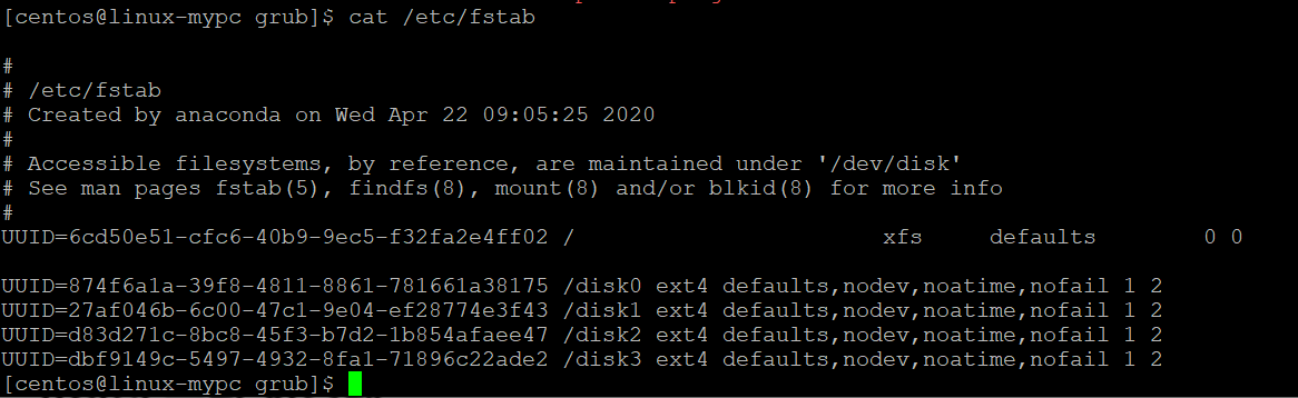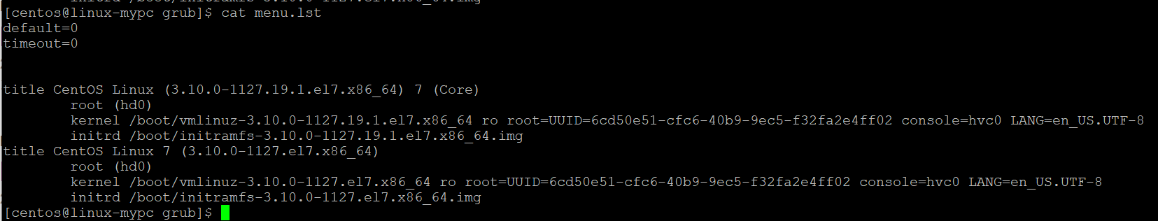 grub-intsall 명령어는 /boot/grub/menu.lst 파일의 설정 내용을 부트디바이스의 MBR에 GRUB를 설치하는 명령어.
