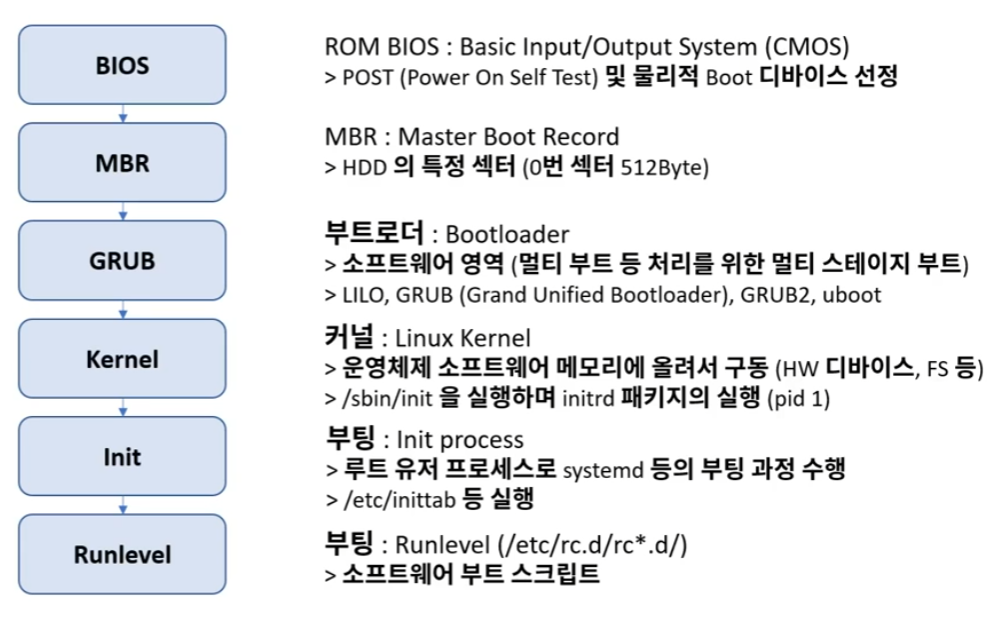 ※ 리눅스 배포판과 무관하게 모든 리눅스 계열 공통 부팅 과정이다.