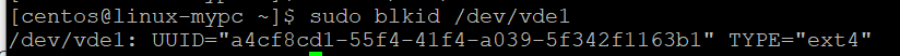 $ blkid /dev/vde1