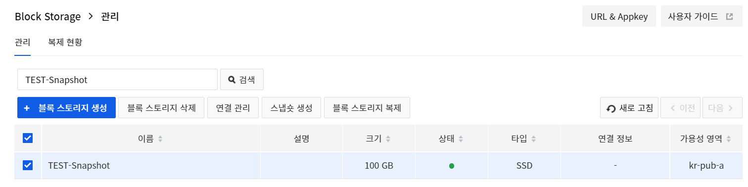 ※ 복제 기능은 일회성이며 그 이후 원본 블록 스토리지의 변동 사항은 반영되지 않는다.