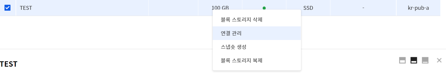 - 인스턴스에 연결되어 있는 블록 스토리지는 삭제할 수 없습니다. 먼저 연결을 해제합니다.