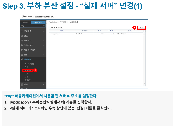 (2) 부하 분산 설정 - "실제 서버" 변경