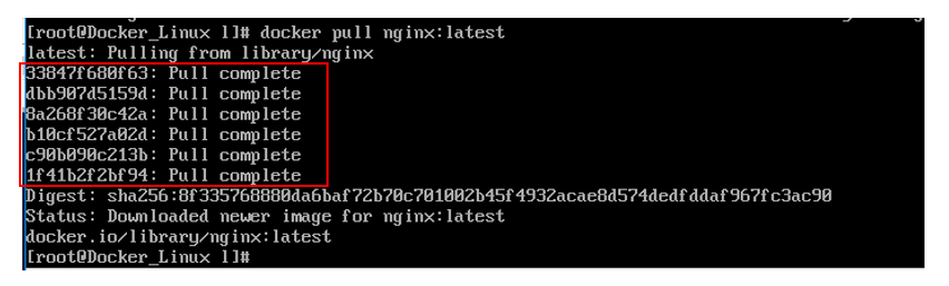 - 5개의 Layer로 된 Container Image를 다운로드.