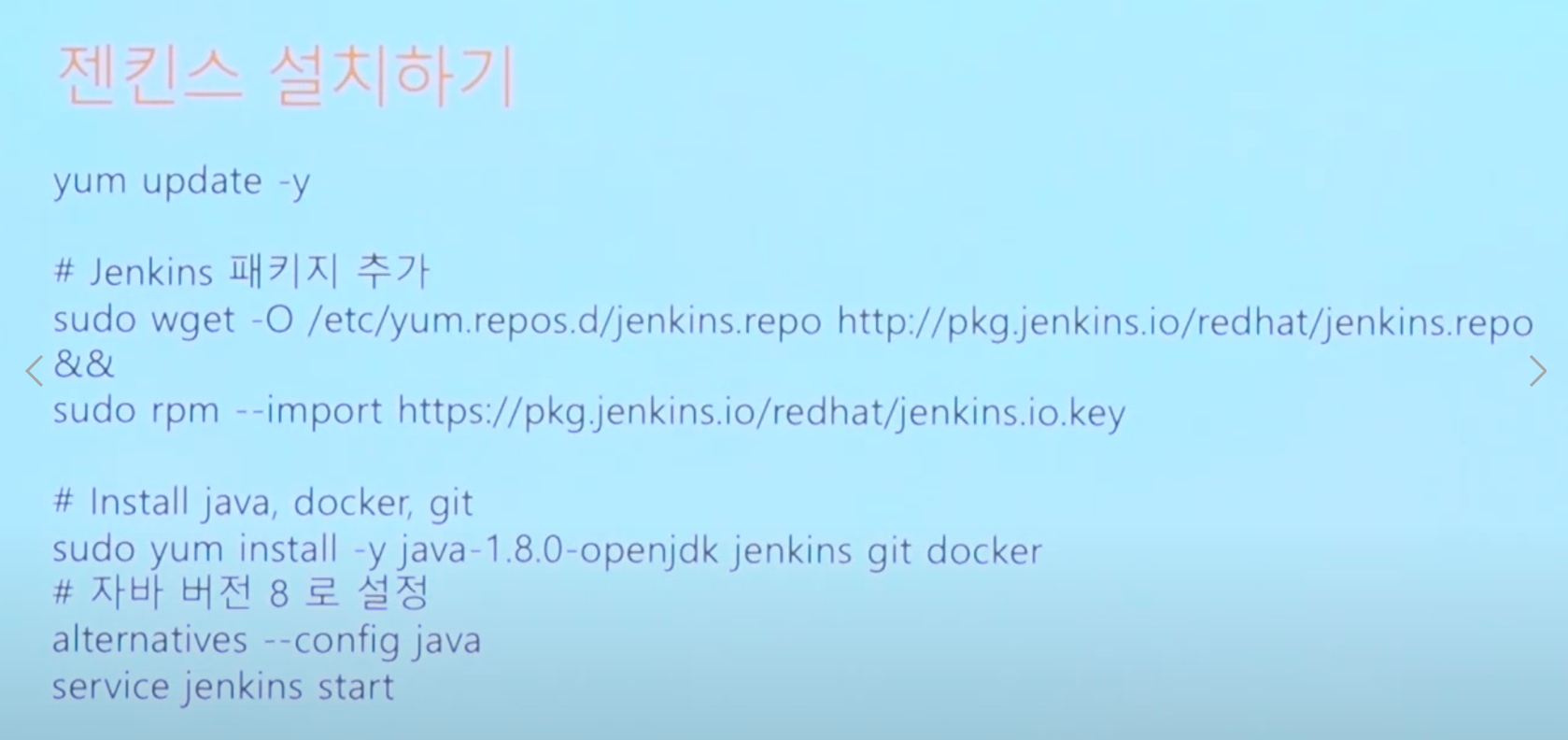 - Jenkins를 설치하기 위해 yum으로 설치한다.