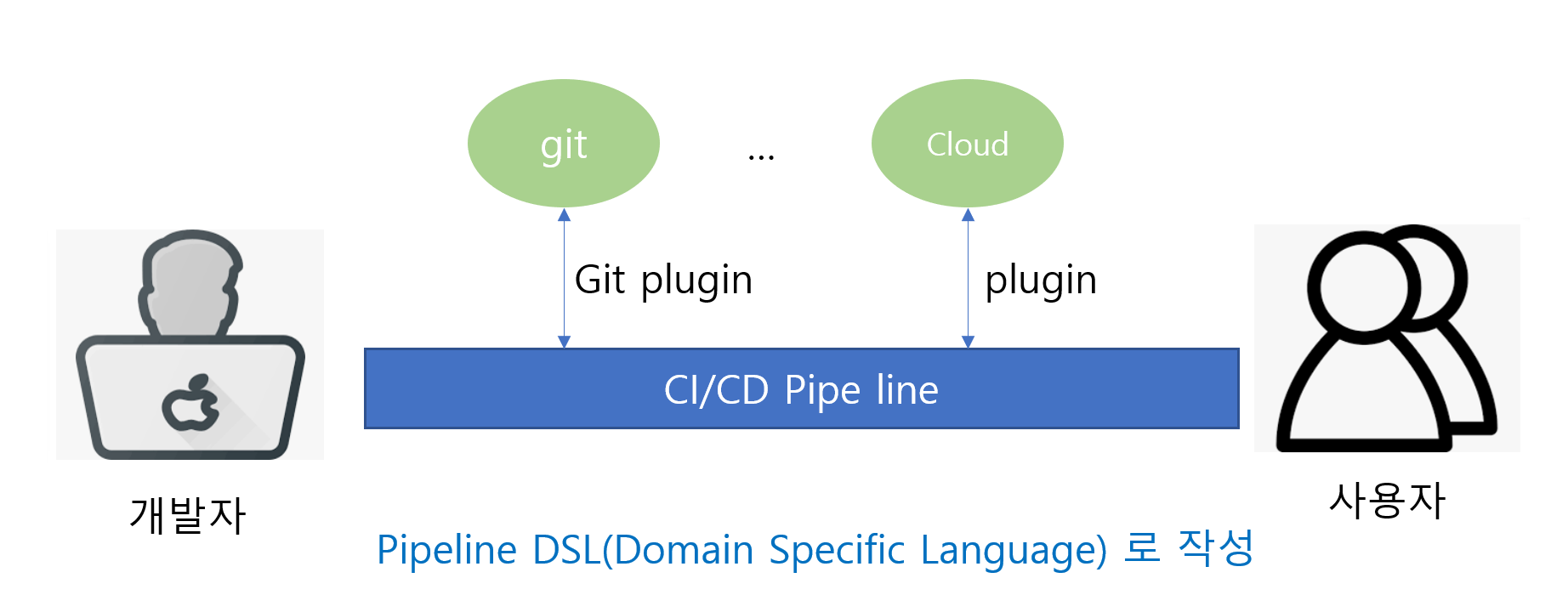 - Pipeline DSL(Domain Specific Language) 로 작성.