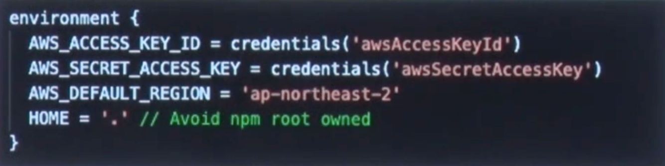 - AWS token, Git access token, secret key, ssh(username, password)등의 정보들을 저장할 때 사용한다.