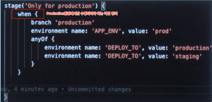 - ex) 프론트엔드 배포를 위한 스테이지, 등