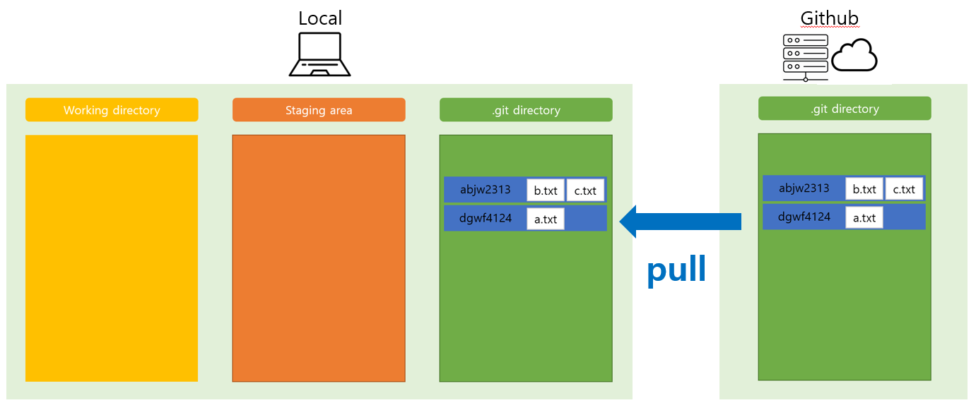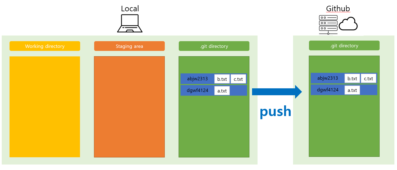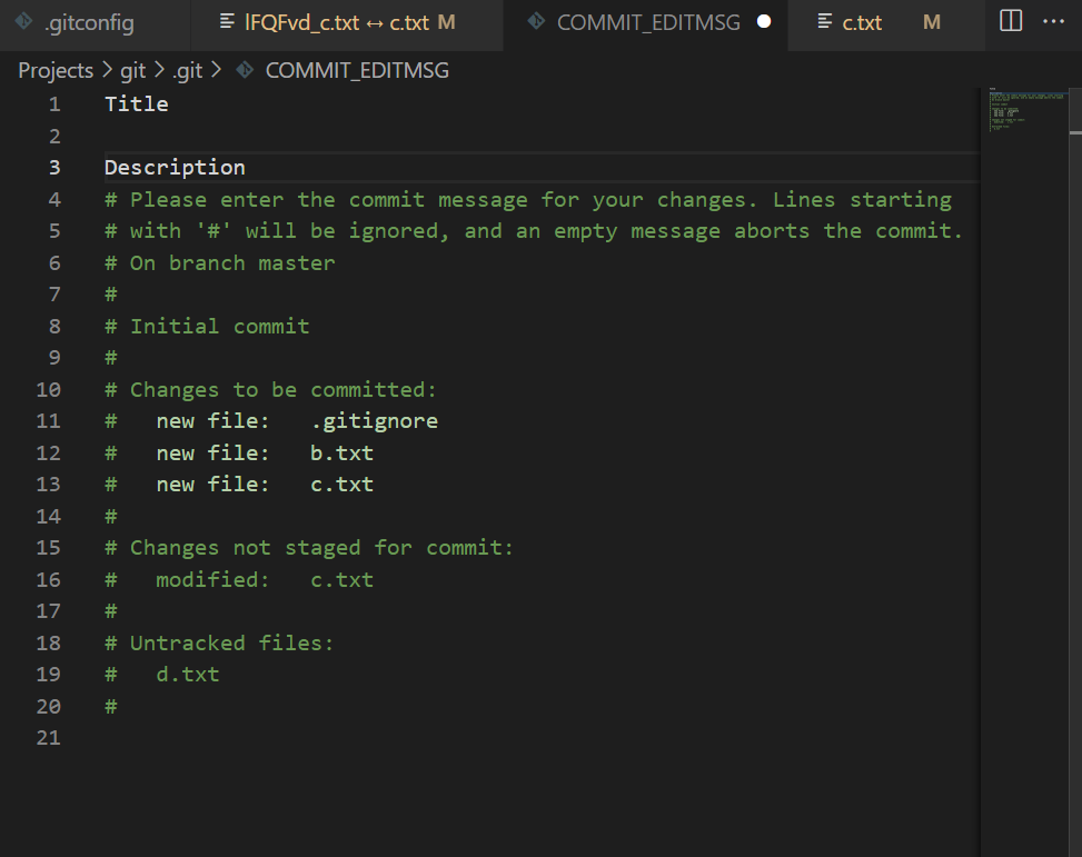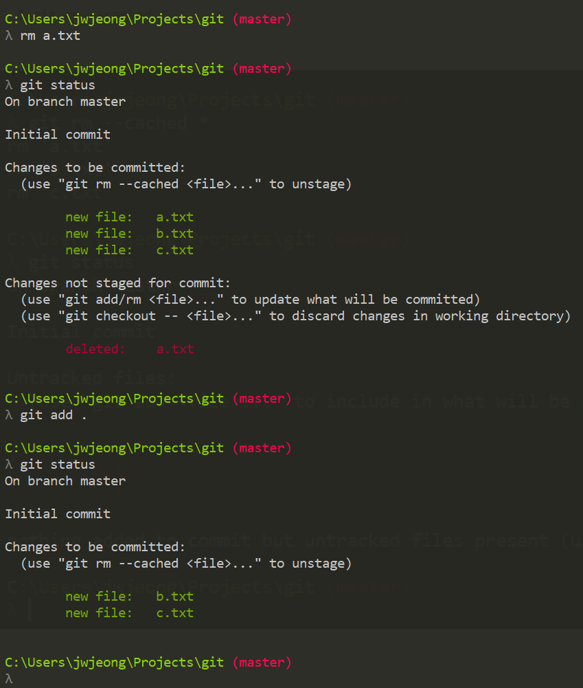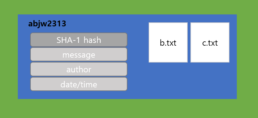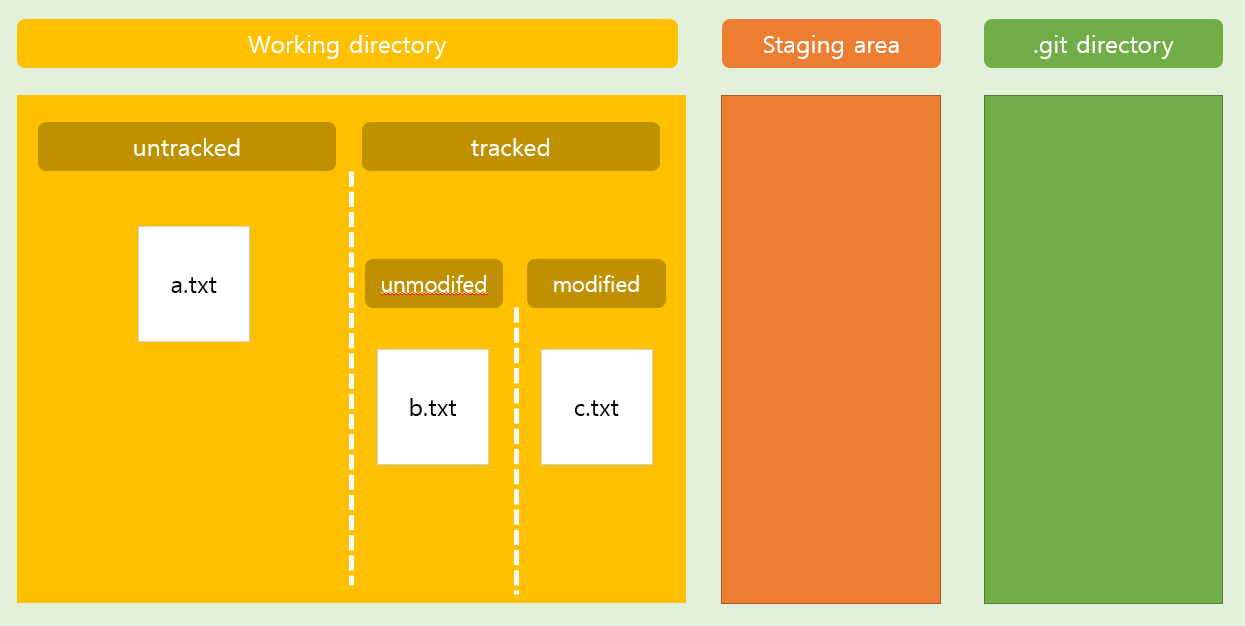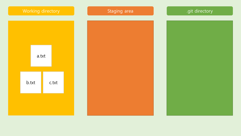 - a.txt b.txt c.txt 파일이 commit 할 준비가 되어 있음.