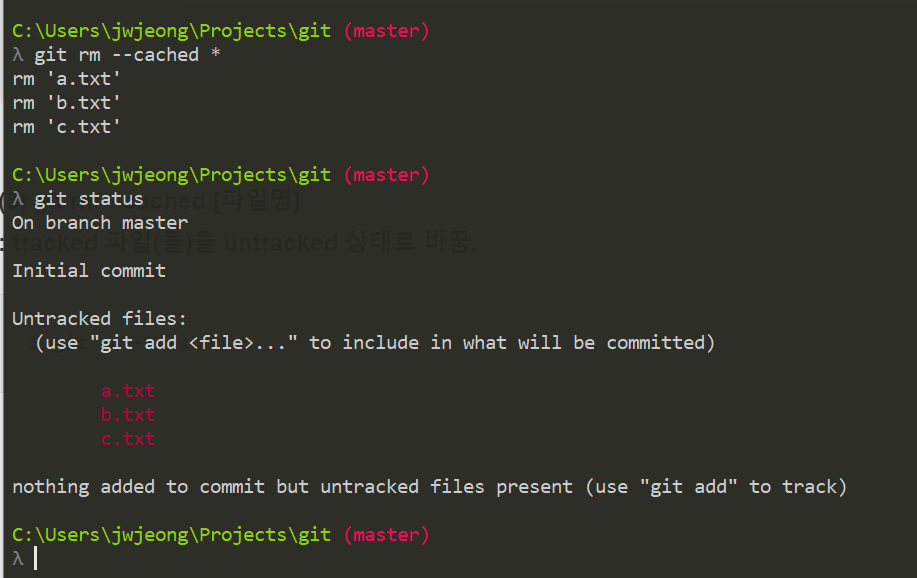 (3) git rm --cached [파일명]