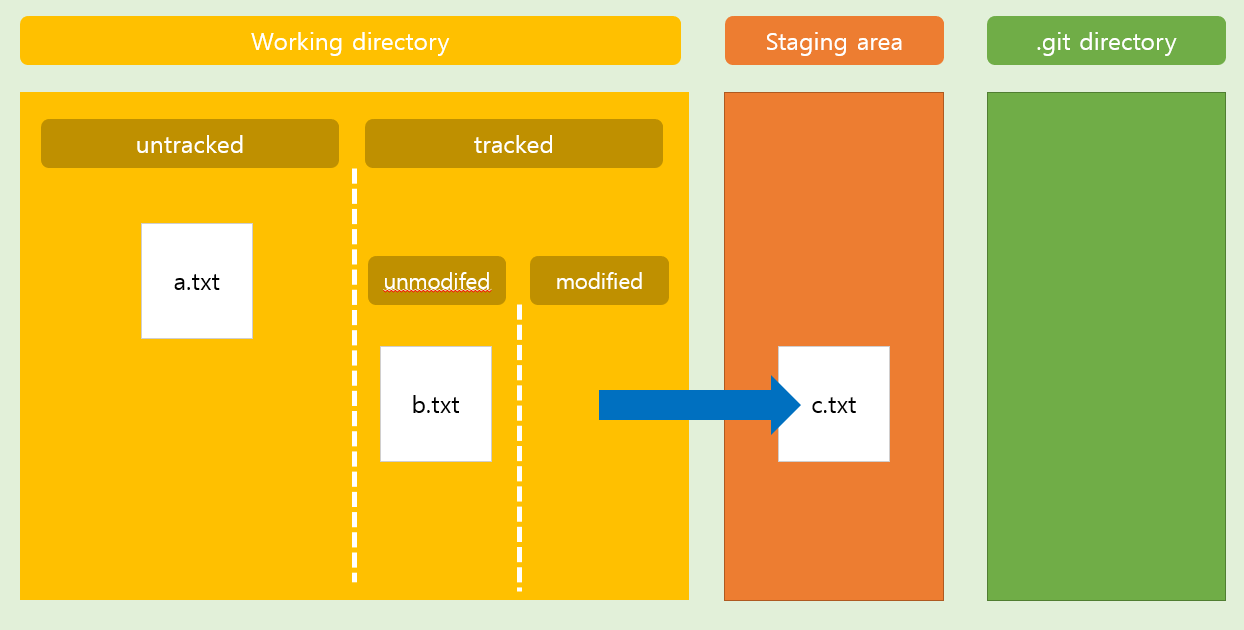 tracking 하고 있는 파일 중(tracked)에서도 수정이 된 (modified) 파일만 staging area 로 옮겨갈 수 있다.