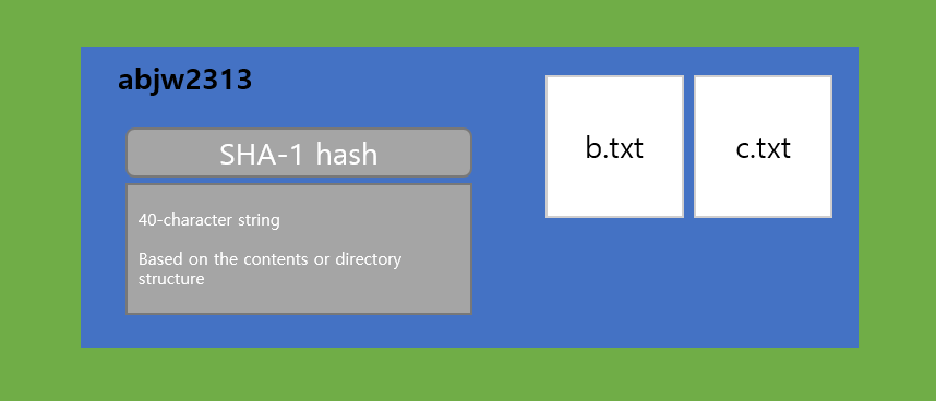 각각의 버전에는 스냅샷된 정보들을 기반으로 고유한 해쉬코드.