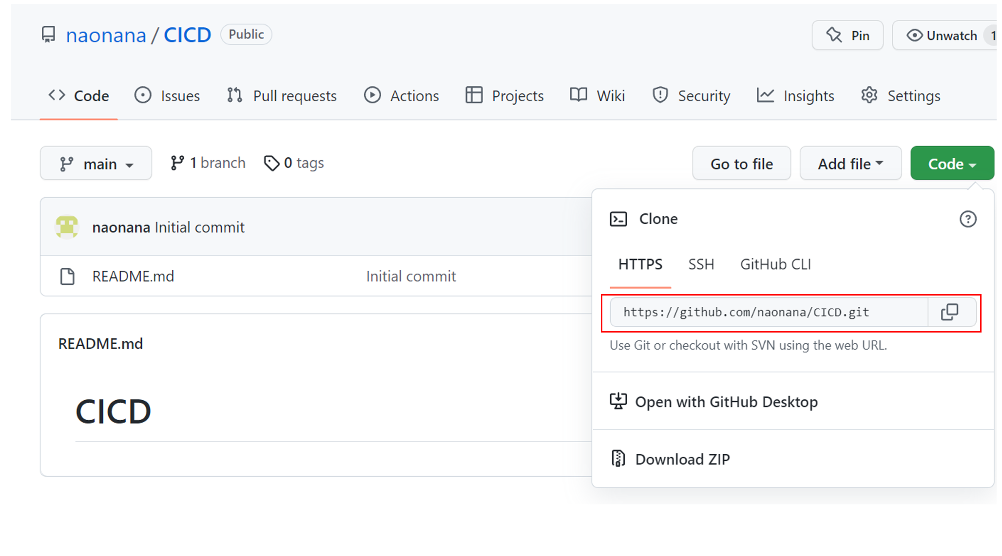$ git clon https://github.com/naonana/CICD.git