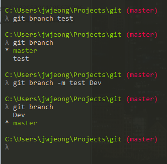 - git branch -m (기존 브렌치명) (새 브렌치명)