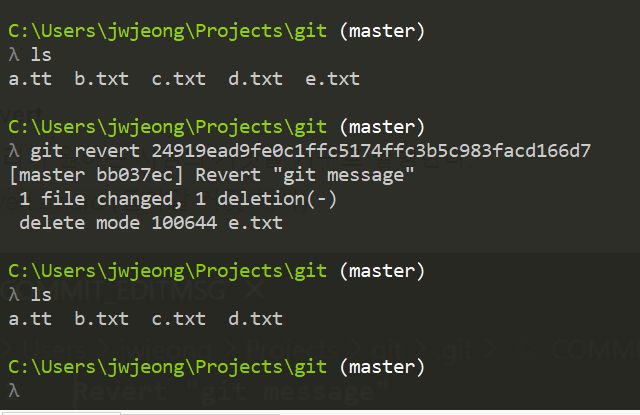 : 되돌리기 원하는 시점의 커밋을 거꾸로 실행한다.