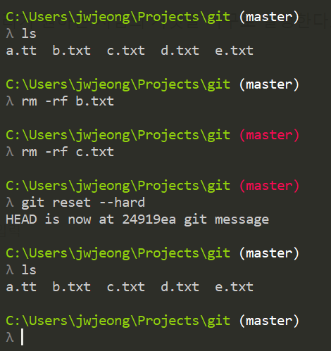 - 다시 git reset --hard 명령어 입력.