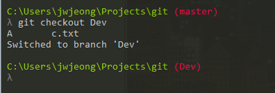 - $ git switch Dev