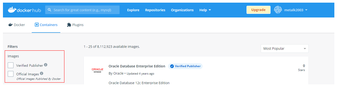 - image 종류 : Official Images, Verified Publisher, etc.