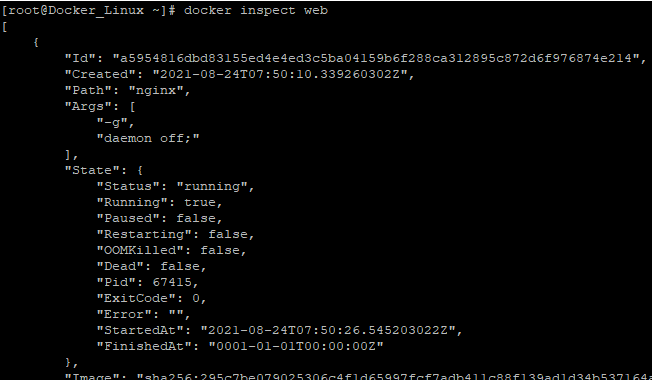 실행 중인 컨테이너를 더 자세히 보기. 리소스는 어떻게 쓰고 있고 PID는 몇 번인지, IP는 몇 번인지 등