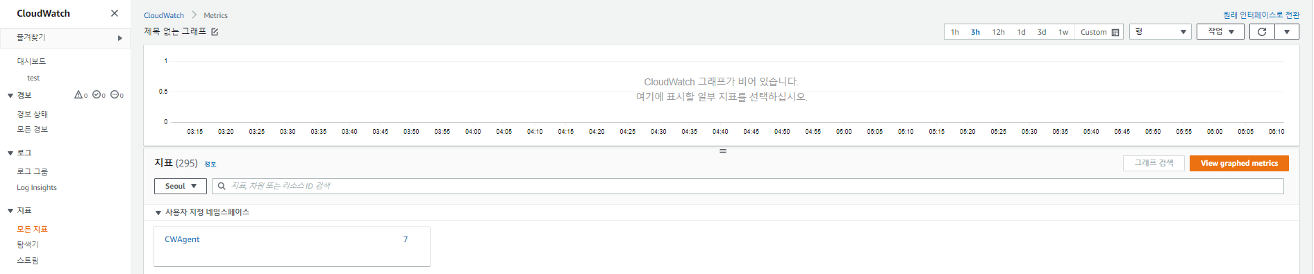 > 사용자 지정 네임스페이스에 CWAgent 가 추가된 것을 확인할 수 있다.