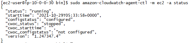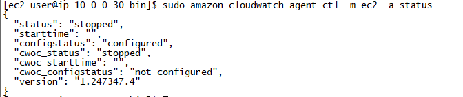 sudo amazon-cloudwatch-agent-ctl -m ec2 -a status