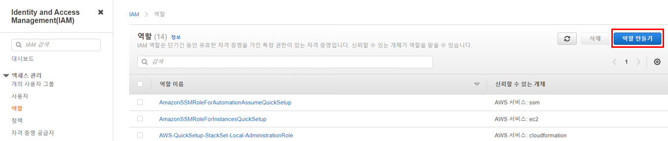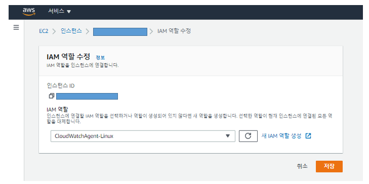 - IAM 역할에 새로 생성한 역할을 선택 후, 저장