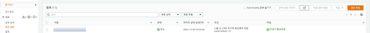 4. 지표가 정상 범위 내에 있는 지 관찰할 수 있도록 CloudWatch 경보를 생성.