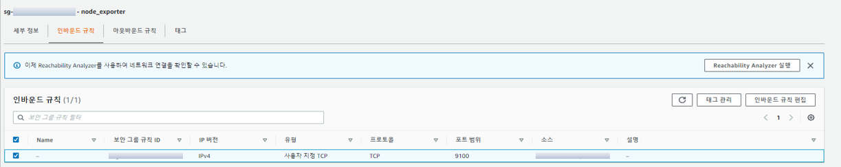 (1) 대상 인스턴스에 Port 9100 에 대한 Rule이 있는 보안 그룹을 추가한다.