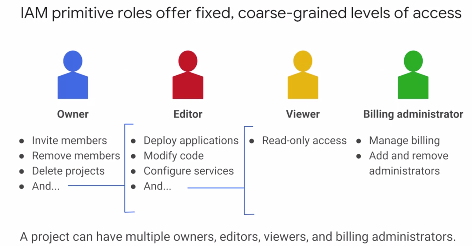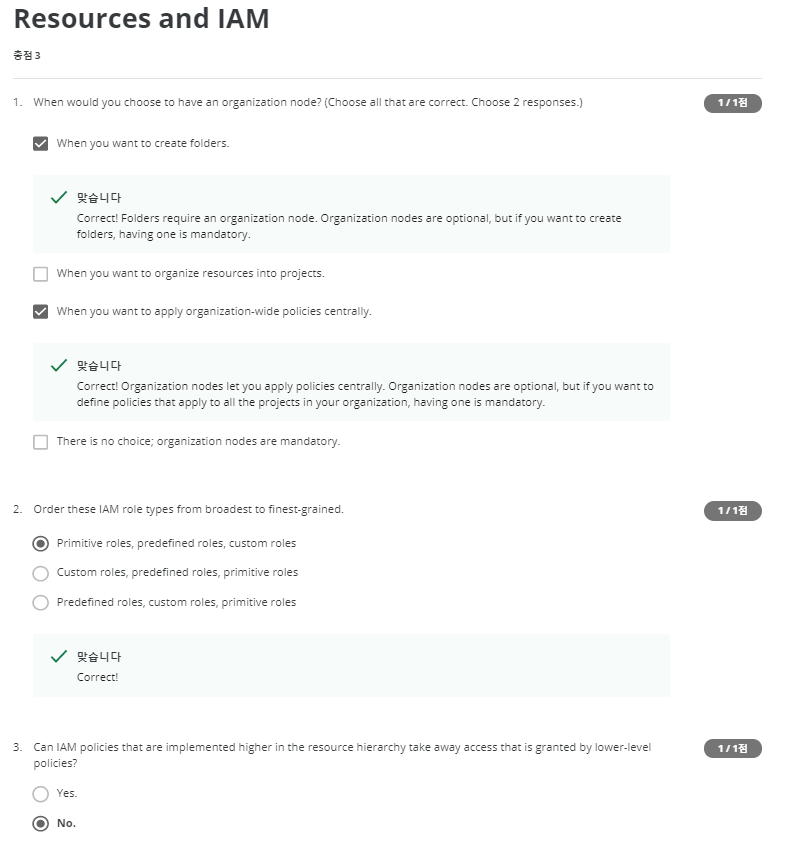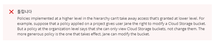 - 사용자 지정 역할은 프로젝트와 조직 단위 레벨에서만 사용된다. 폴더 수준에서는 사용할 수 없다.