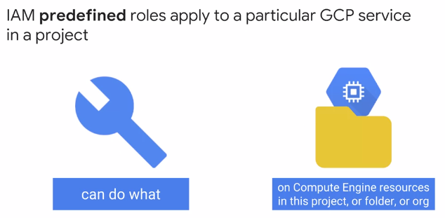 Compute Engine은 미리 정의된 역할 집합를 제공한다. 사용자는 주어진 프로젝트의 Compute Engine 리소스, 폴더 또는 전체 조직에 적용할 수 있다.