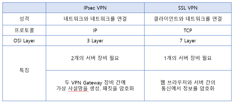 IPSec VPN 과 SSL VPN의 차이