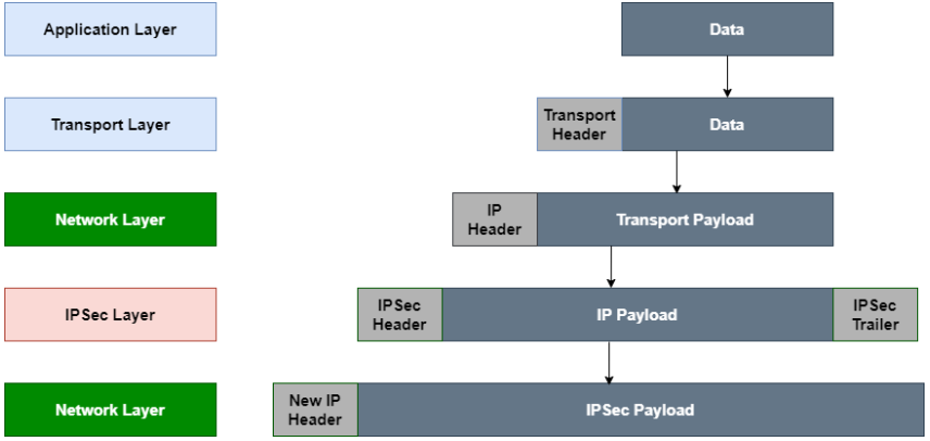 OSI 7계층 중 Layer 3인 네트워크 계층에서 동작하며 IPSec VPN 터널을 통해 이동하는 패킷이 가진 헤더, IP 주소, 데이터 부분이 모두 암호화 처리되어 전달된다. 대신에 IPSec VPN에서 추가한 헤더와 IP주소로 데이터가 전달된다. 패킷을 암호화함으로써 Layer 3의 단점인 데이터 암호화를 해결한다. 이는 IPSec(Internet Protocol Security)라 불리는 Tunneling Protocol 이 있기에 가능한 것이다.