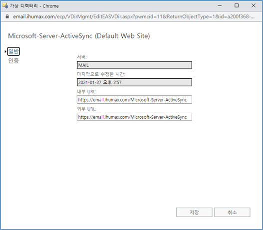 - ECP -> 서버 -> 서버 -> Exchange Server Name -> Outlook Anywhere