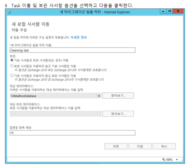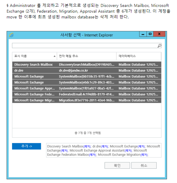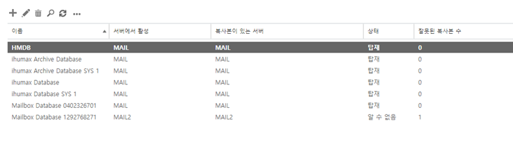 - 기본 데이터베이스에 모든 사서함이 이동이 완료되었으면 기본 데이터베이스를 삭제