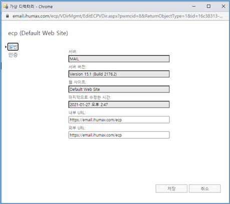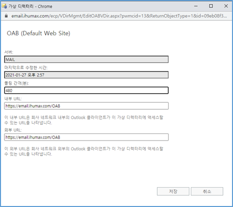 - Autodiscover URL은 ECP 페이지에서 변경이 안되며, Exchange Shell로 진행해야 함.