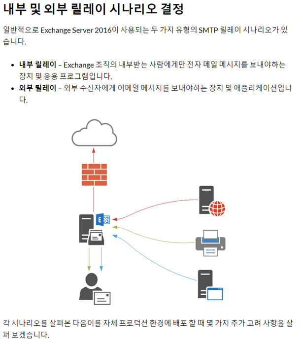 - 해당 시나리오는 Edge Server(Client Access)가 없이 단일 Mailbox Server 구축을 가정함.