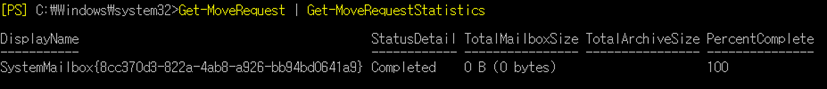 - Get-MoveRequest | Get-MoveRequestStatistics 명령어를 사용하여 이동 상태 확인