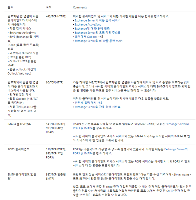 (Exchange Mail Flow - 모든 Port와 Service에 대한 설명/구성도)
