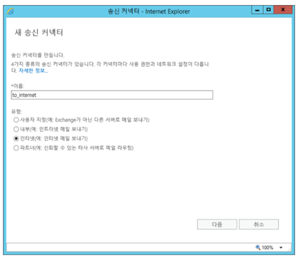 - ECP > 메일 흐름 > 송신 커넥터 > “+”