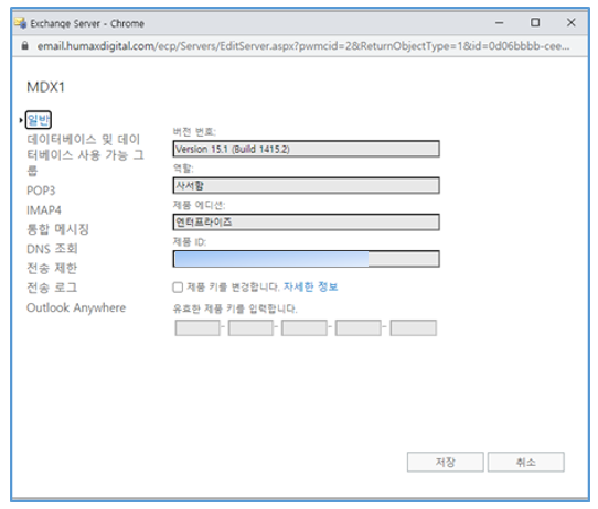 - Exchange Server 관리 센터 > 서버 > “제품 키 입력”
