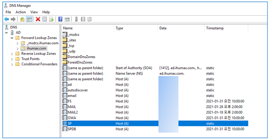 ※ 각 레코드들에 대한 Reverse Record (PTR) 도 내부/외부 DNS 모두 등록해주어야 한다.
