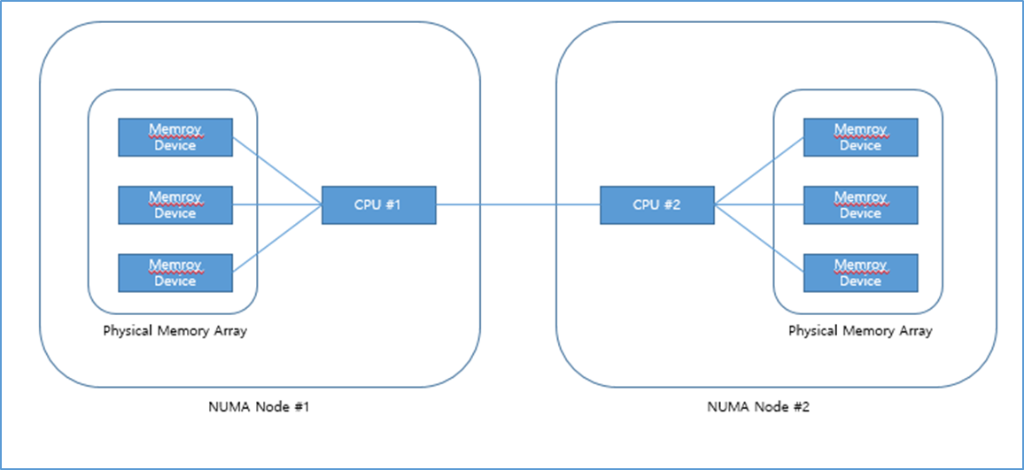 최근의 프로세서는 NUMA 라는 개념을 이용해서 각각의 CPU가 사용할 수 있는 로컬 메모리를 제공한다.