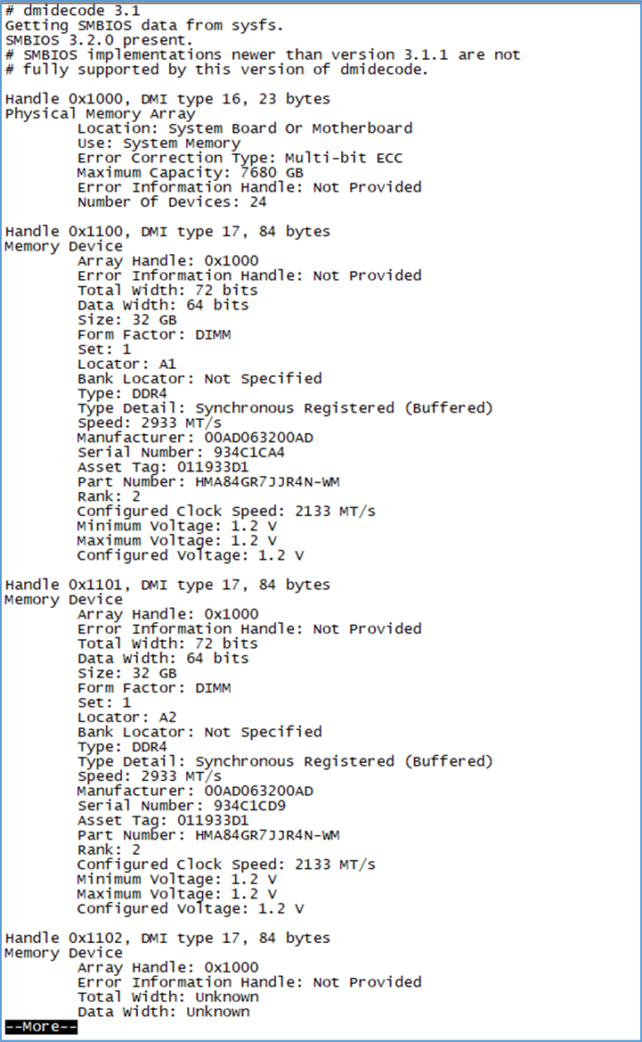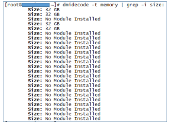 32GB 의 메모리가 4개 꽂여 있는 것을 확인할 수 있다. 이를 통해 전체 메모리의 용량이 128 GB라는 결론이 나온다.