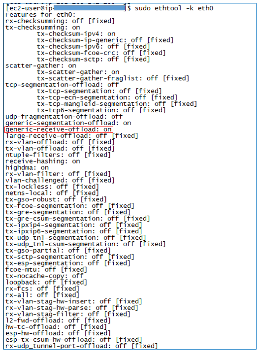 $ sudo ethtool -k eth0
