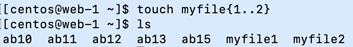 $touch myfile{1..3} // {1..3} 집합, myfile1, myfile2, myfile3 생성.