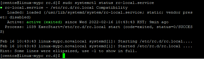 (2) /etc/rc.d/rc.local에 스크립트 파일 실행 명령 추가.