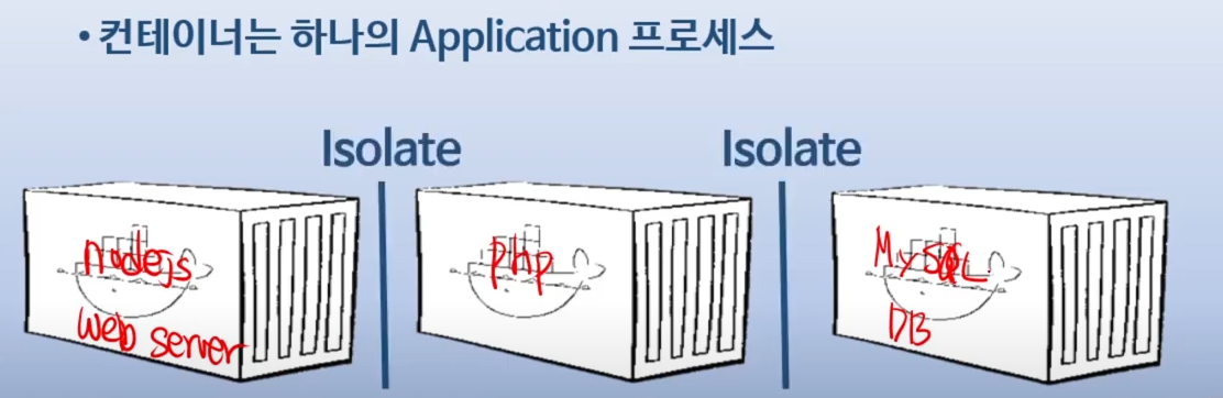 - 컨테이너는 하나의 Application 프로세스