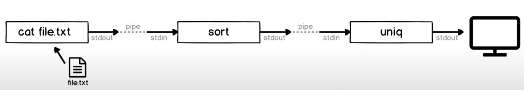 여러 개의 명령어를 조합해서 사용할 수 있는 기능. 명령어1의 실행 결과를 명령어2에 넣어주는 것.
