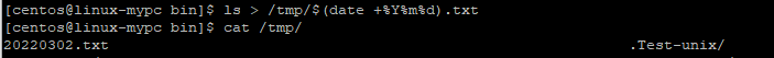 [centos@linux-mypc bin]$ ls > /tmp/$(date +%Y%m%d).txt