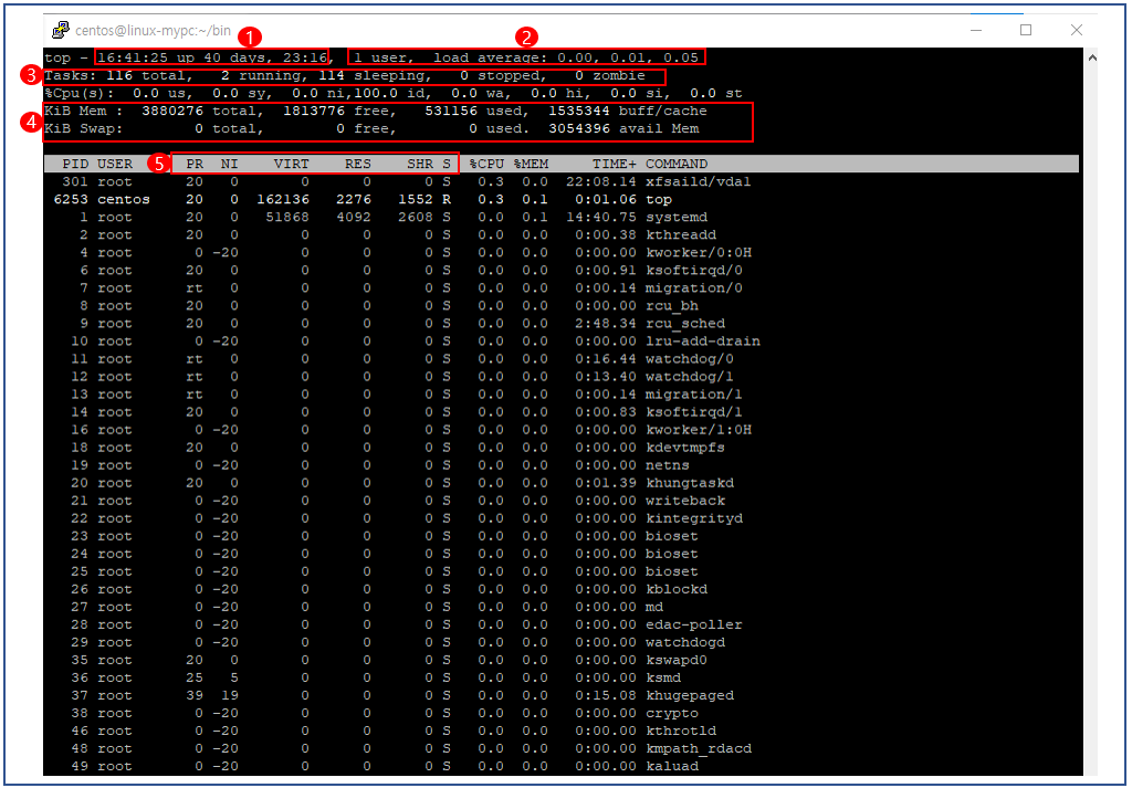 (4) 각각의 CPU, Mem, swap 메모리의 사용량.